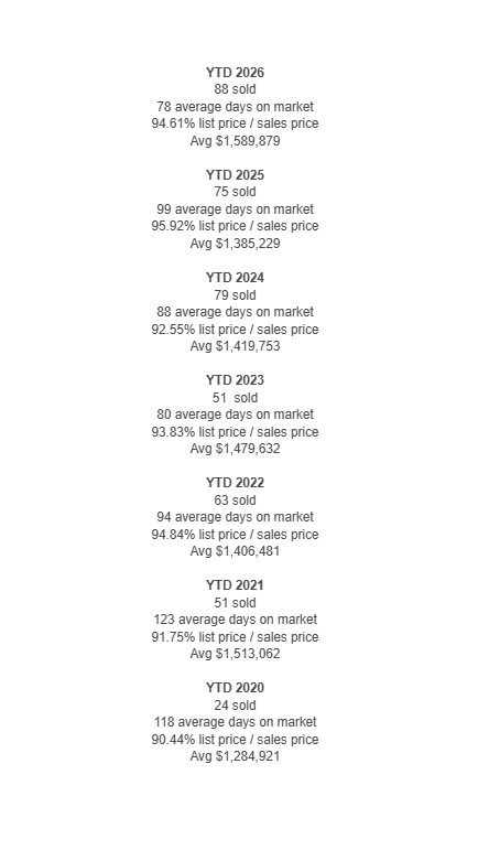 Comparing the last several years the High-end Luxury market has remained extremely strong and appears to be unmoved. Earlier last year it was looking like there was going to be a decline for the luxury market, however it rebounded quite well. There are 233 Active listings (available homes) has increased minimally at about 8% (5% lower than 2024). There are 103 Pendings (under contract homes) have increased 19% (8% higher than 2024). There are 88 Solds year-to-date (sold homes) and increased 15% from April 2025 (8% higher than 2024). Earlier in the year we were running neck and neck and now it starting to run ahead of last year.. This is interesting. I am curious to see which way this trend continues.