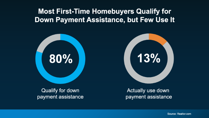 Research from Realtor.com shows almost 80% of first-time homebuyers qualify for down payment assistance (DPA), but only 13% actually use it (see chart below):