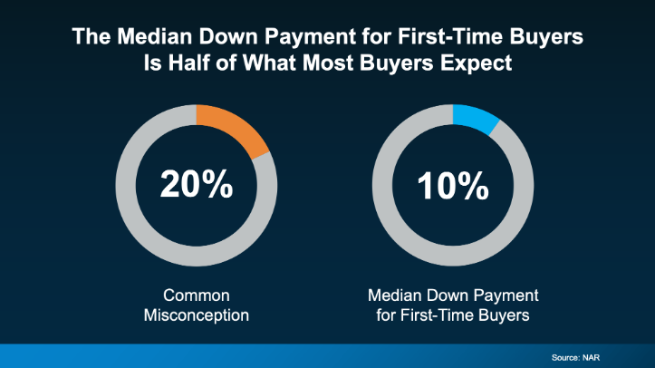 According to the National Association of Realtors (NAR), the median down payment for first-time homebuyers is only 10%. That’s half of what you probably expected.