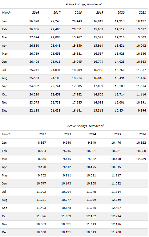 There are 3,731 homes under contract preparing to close in the next 2-6 weeks compared to 3,204 homes under contract last month at this time and 3,862 in March 2025.